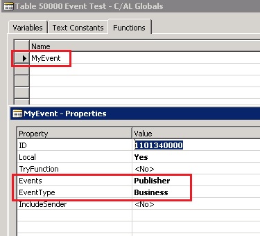In my NAV environment I’ve created a simple table 50000 called Event Test with the following fields: