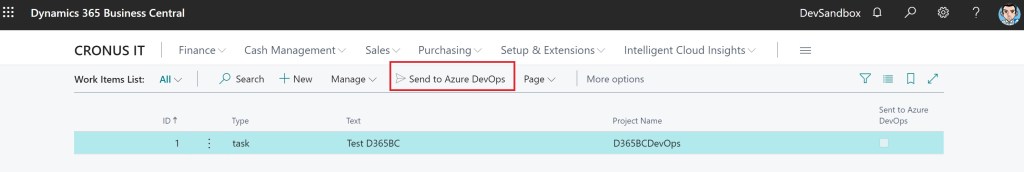 Then I’ve created a list page as a UI for opening a work item. On this page I have an action that takes all the work items not sent to Azure DevOps and then sends them to Azure DevOps by calling its REST API. Code for the page is omitted here (very easy to do):