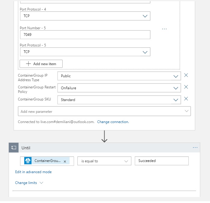 The container’s creation on ACI requires a bit of time, so I’ve added an Until loop that waits until the Container Group state is equal to Succeeded: