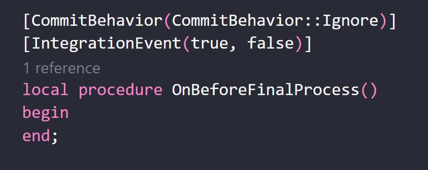 To avoid this, starting from Dynamics 365 Business Central version 17 you can now specify the behavior of a commit operation inside a method scope (procedure) or inside an event by using the CommitBehavior attribute. Possible values are: