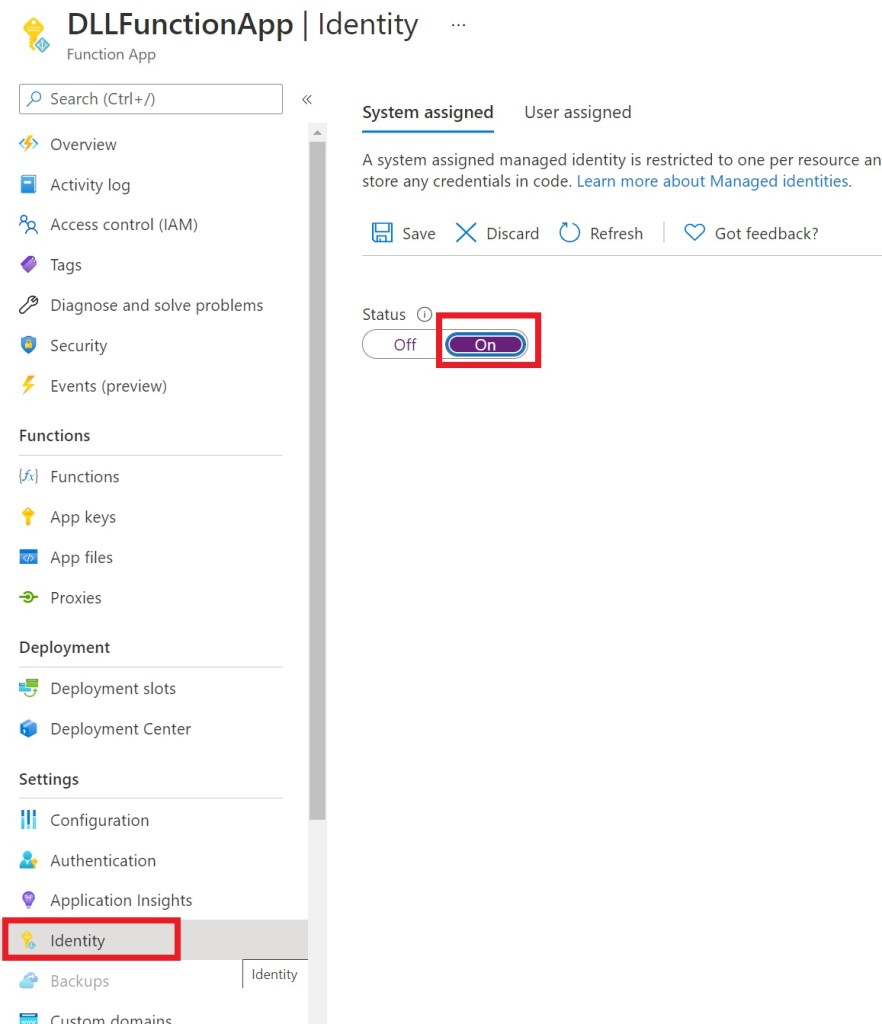As an example, here I’ve created a system-assigned identity for an Azure Function app: