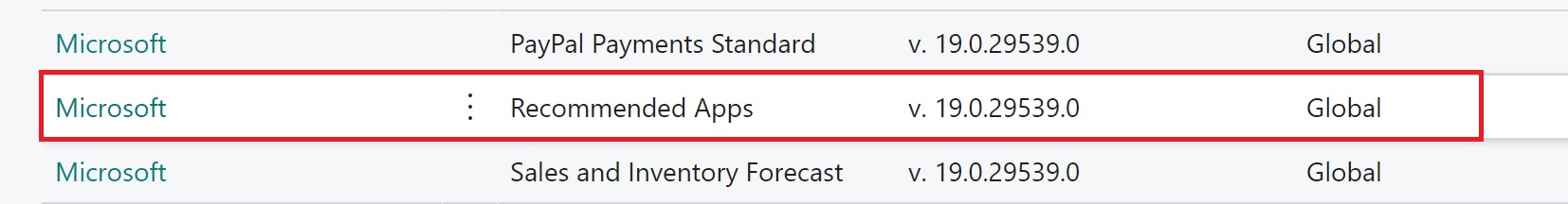 In Dynamics 365 Business Central, you have a new Microsoft’s extension installed as default called Recommended Apps: