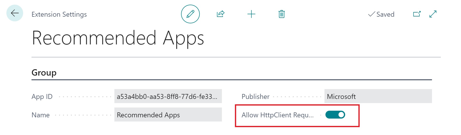 Another extremely important thing to remember is that, in order to have this code working, you need to enable outgoing HTTP calls for the Recommended Apps extension: