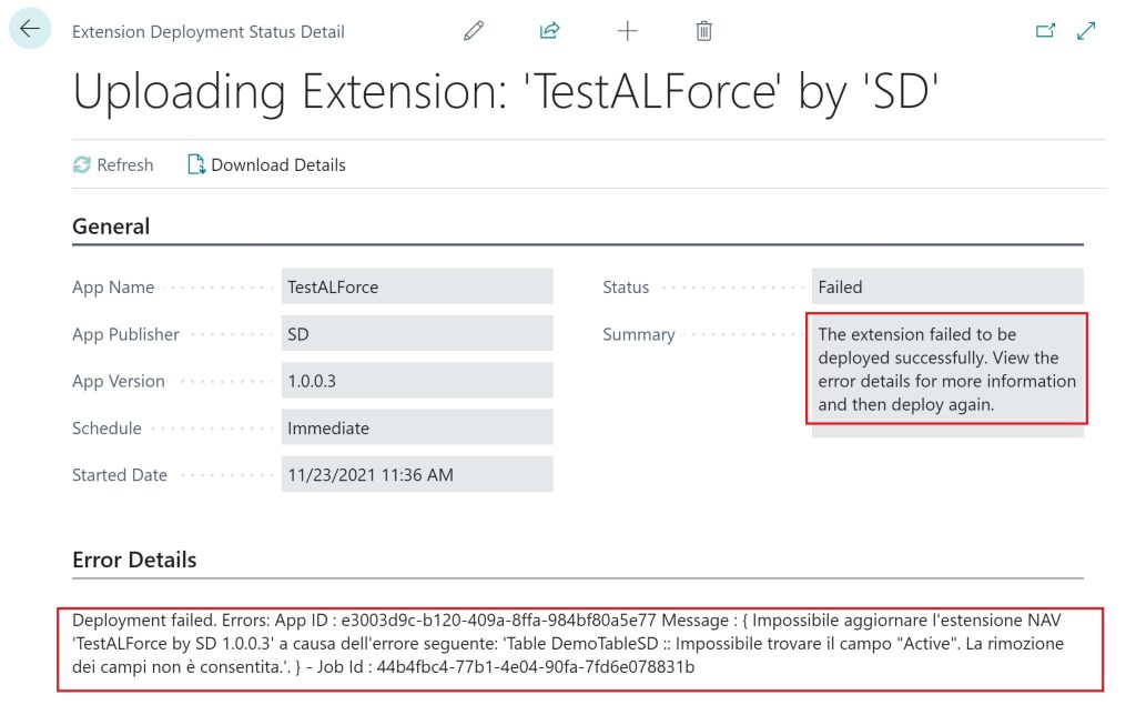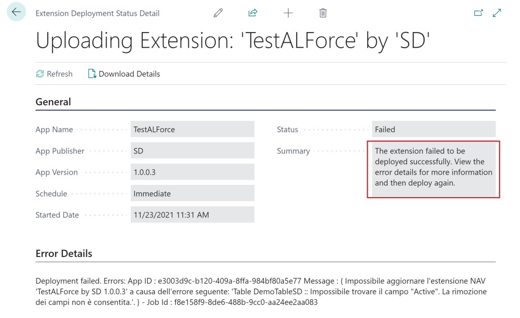 In general, please remember that Microsoft is working on a “fix” for this strange behaviour. If you are in this situation, what you should always do is to create a new extension version (also if the previous upload with Schema Sync Mode = Add is failed) and then do the force sync with this new app version.