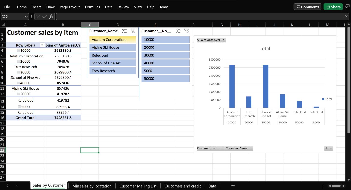 Excel layouts work the same way as Word and RDLC layouts in that they can be edited and saved back again into Business Central. With Excel layouts, users can now create and edit report layouts simply by using the full palette of capabilities in Excel such as sliders, diagrams, charts, and pivot tables.