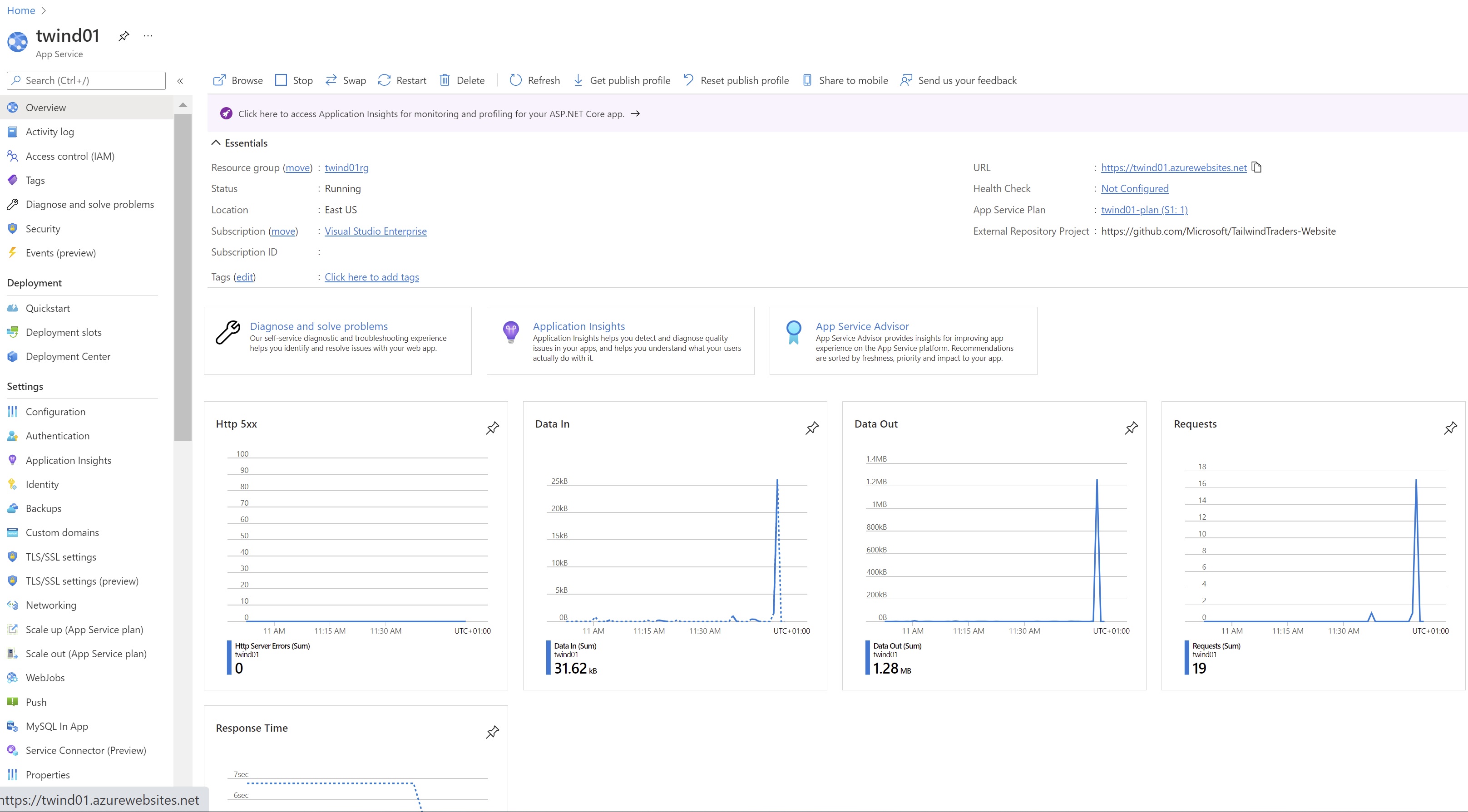 This web application is deployed on Azure in an App Service instance (here called twind01):