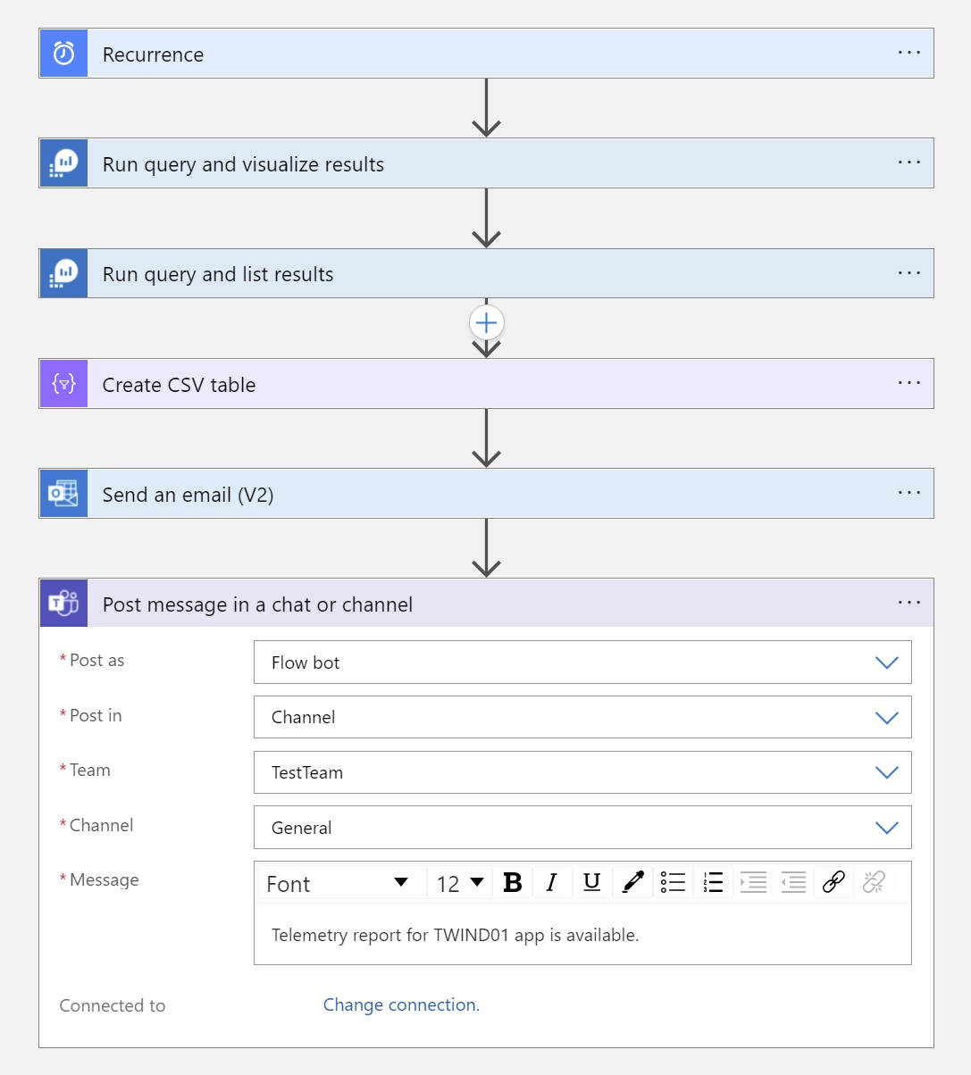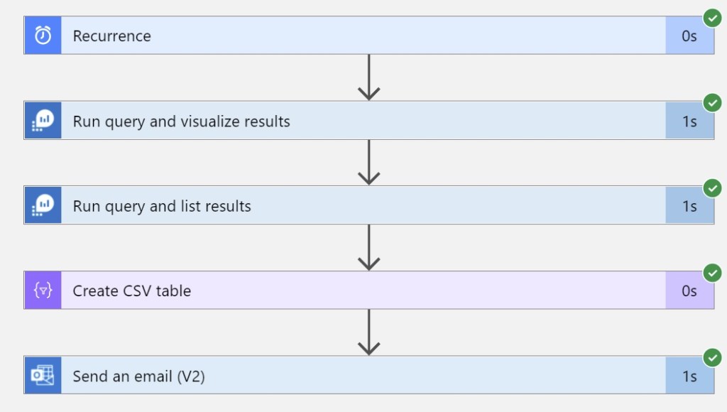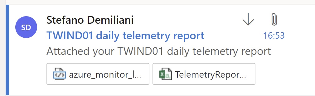 The output could be an email with an HTML body of the results of the inspection or an email with a CSV file containg the telemetry details as attachment.