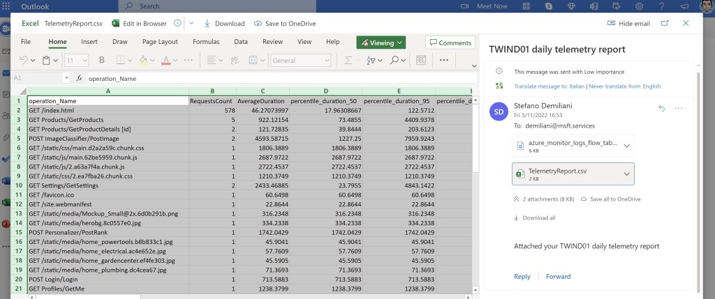Now you have an email with two attachments: an HTML report and a CSV file with the telemetry details: