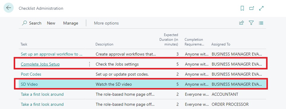 Here I’m adding two new tasks into the checklist for the BUSINESS MANAGER EVALUATION role. The result is the following:
