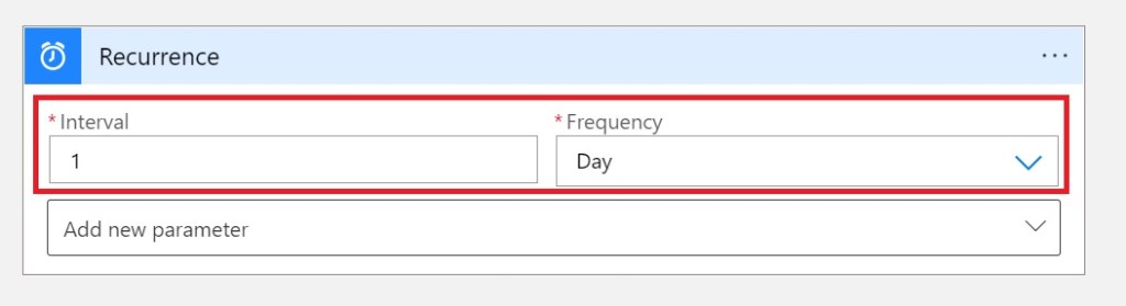 Using the Recurrence trigger in a Logic App is simple: just select it as a trigger, then specify the Interval and Frequency of your workflow runs.