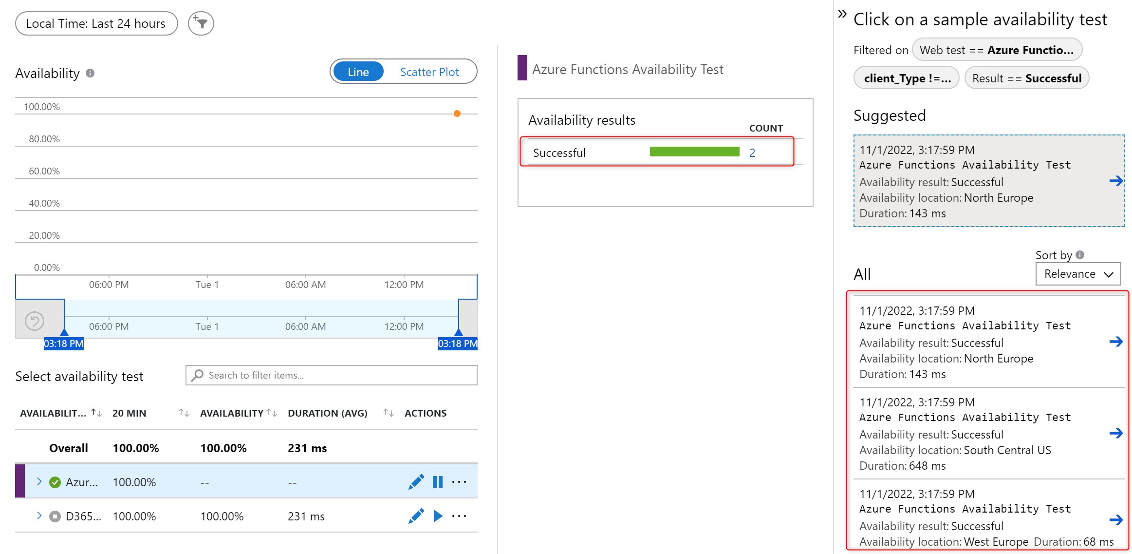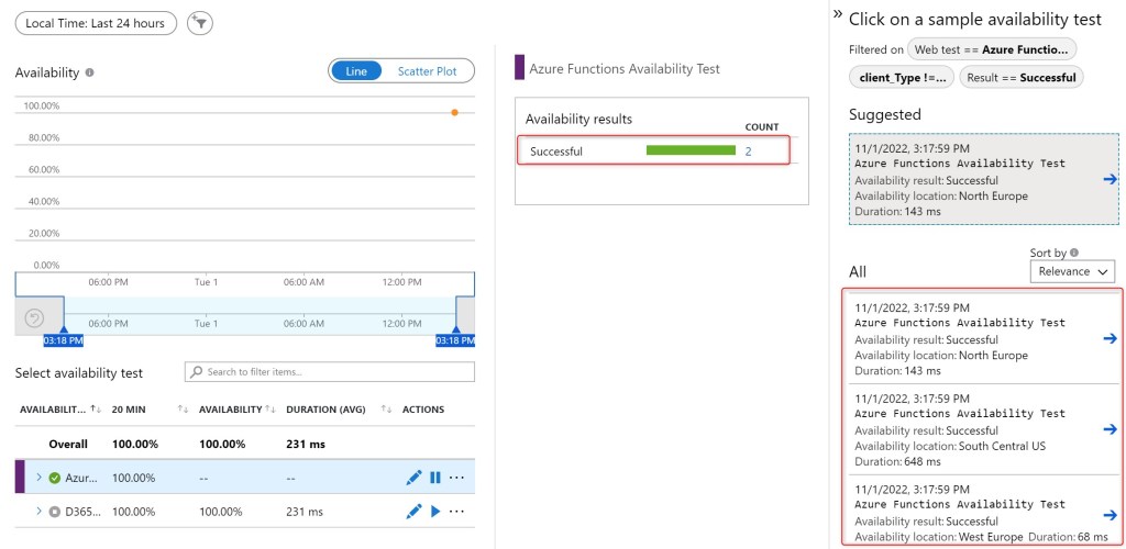 Click on Create and your availability test will be deployed and executed: