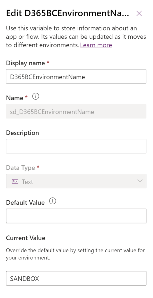 Dynamics 365 Business Central and Power Automate connector: using environment variables