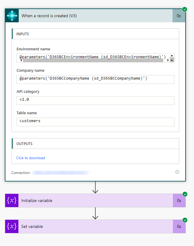 This is quite noisy if you want to move your flows between environments, because you need to specify again the connections on every trigger and action. Unfortunateky there’s no documentation on how to use the Dynamics 365 Business Central connector dynamically.