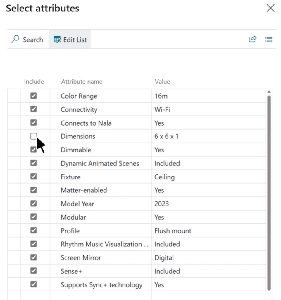 You can then edit the generated text, copy it and also improve the generated description. If you click on the ellipsis you can specify the item attributes that need to be exposed in the description: