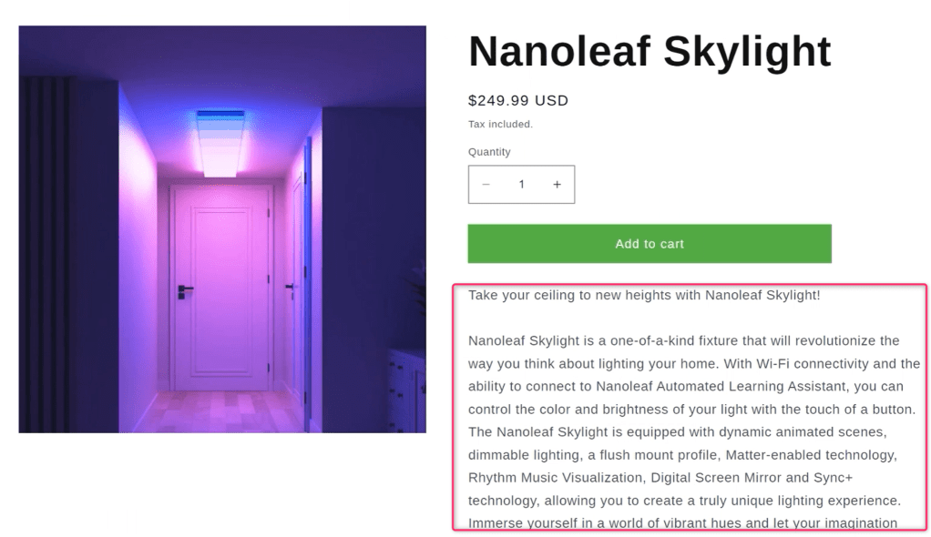 When you have generated a text that is good for you, you can add the item to Shopify for example: