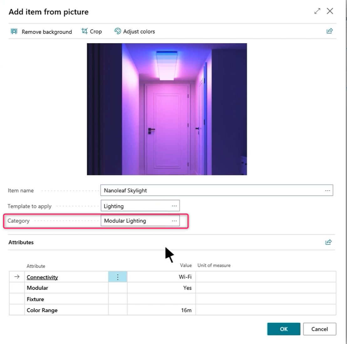 With this new AI-powered feature you will be able to upload an item from a picture and Dynamics 365 Business Central will suggest its description and category:
