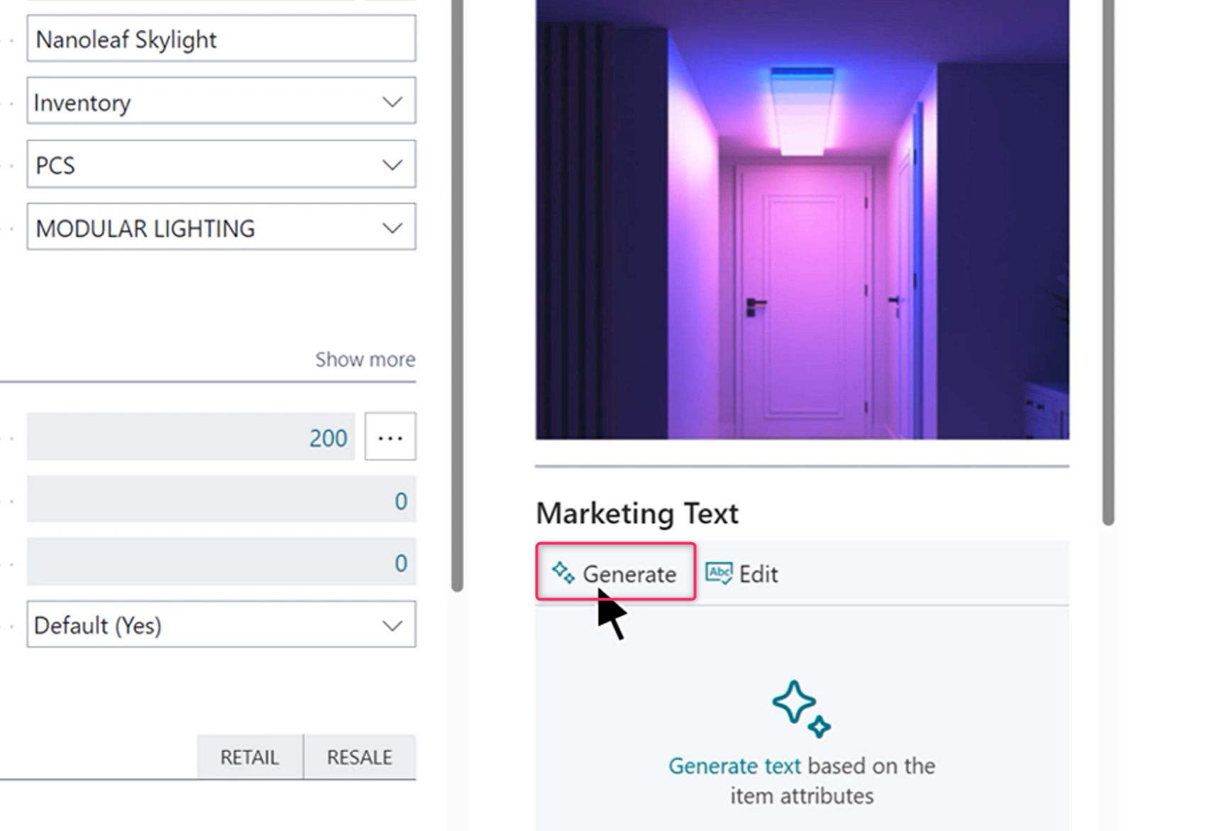 Copilot in Dynamics 365 Business Central streamlines the creation of product listings for online commerce. Product attributes such as color, material and size can be used to create compelling product descriptions for online storefronts in seconds. The descriptions can be further tailored by choosing tone of voice, format and length. Business Central customers using Shopify can seamlessly publish the products with descriptions to their Shopify store in just a few clicks.