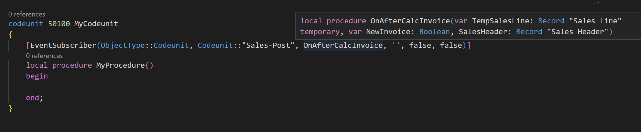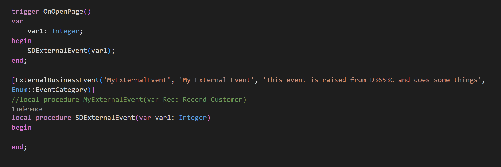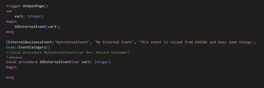 The new attribute ExternalBusinessEvent can mark a procedure to be an external event which will raise an event that an external service like Dataverse can subscribe to it. This attribute can be used together with InherentPermissions to add extra required permissions to subscribe to the event.