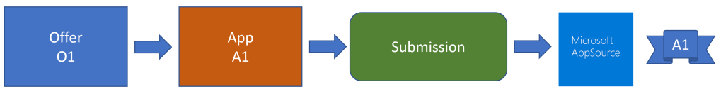 If you want to create two separate offers on AppSource for the same app A1 (for different marketing strategies etc) you can create an empty app (here called A2) with only the app.json file referencing the A1 app and a translation file for each of the language you want to support on the new offer. You can also add an Install codeunit if you need particular data initialization. That’s all: