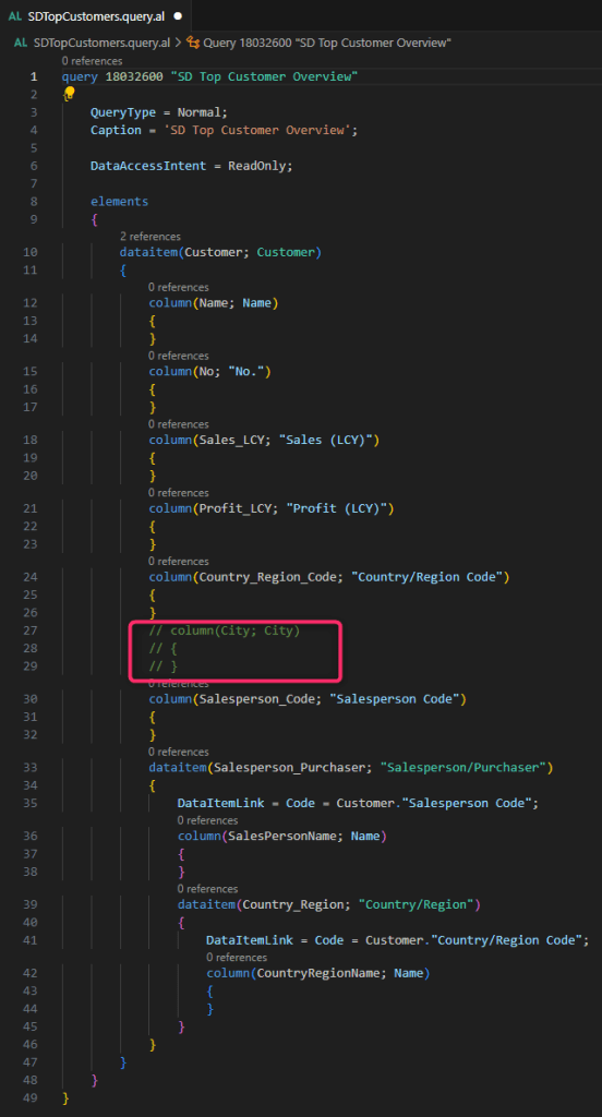 Now let’s imagine to create an AppSource extension (version 1.0.0.0) where I define a simple query object in AL like the following: