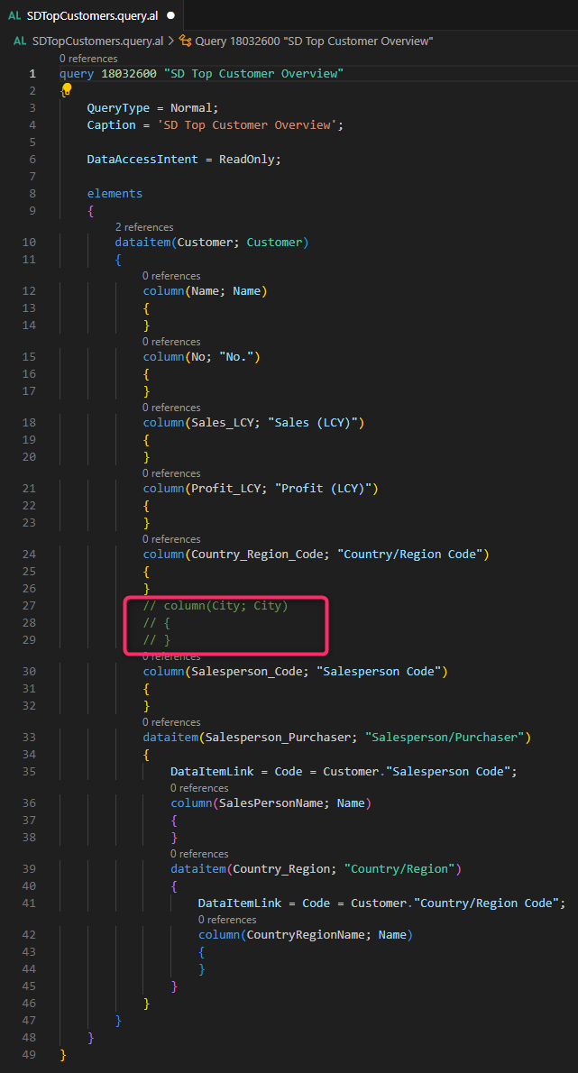 Now let’s imagine to create an AppSource extension (version 1.0.0.0) where I define a simple query object in AL like the following: