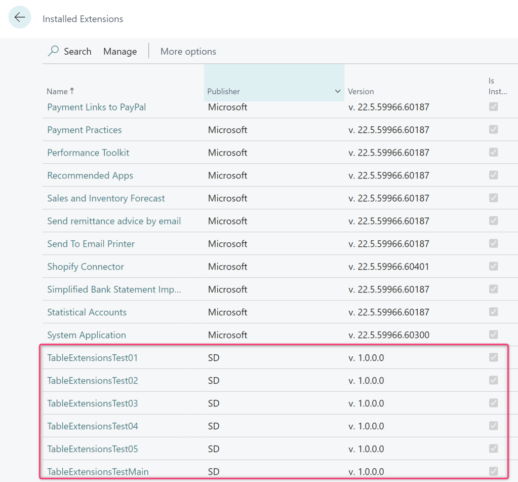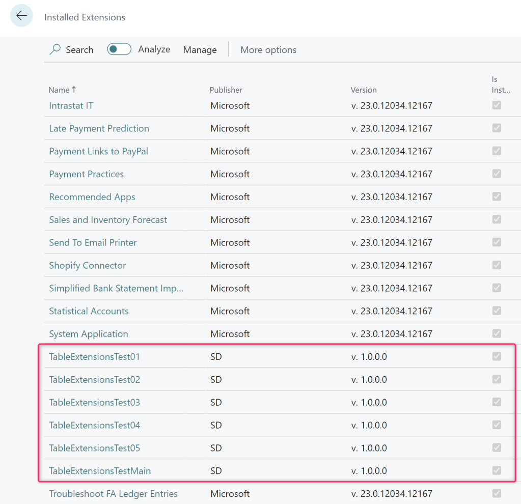 I’ve then installed the 6 extensions (main + 5 dependent extensions) on a Dynamics 365 Business Central version 22.5 environment and on a Dynamics 365 Business Central version 23 environment.