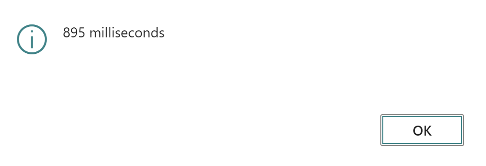 Test 3: Looping through all 100000 records and performing a calculation (sum) on the Amount field defined in the MAIN extension in the Data table + sum of the Amount 2 field defined in a dependent extension (via tableextension of the Data table):