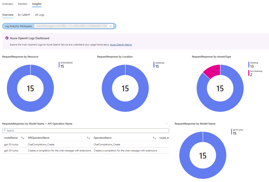 The Insights panel gives you interesting informations coming from logs. In order to use it you need to enable Diagnostic Settings for your Azure OpenAI instance (see here).