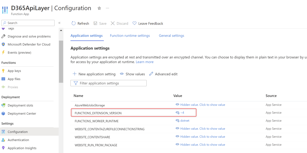 The version of the Functions runtime used by published apps in Azure is dictated by the FUNCTIONS_EXTENSION_VERSION application setting. By default, function apps created in the Azure portal, by the Azure CLI or from Visual Studio/Visual Studio Code tools are now set to runtime version 4.x: