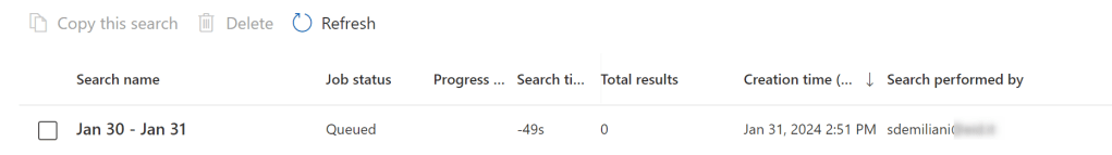 After running the Audit log search tool in the compliance portal, a job is scheduled: