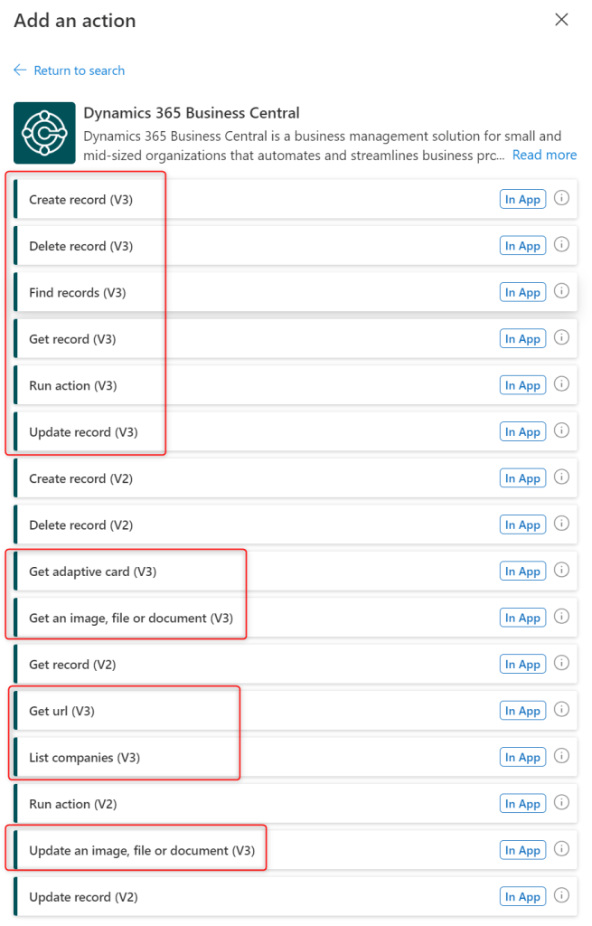 If you have created in the past workflows with Power Automate using the Dynamics 365 Business Central connector, probably you have used some of the connector’s actions marked as V2: