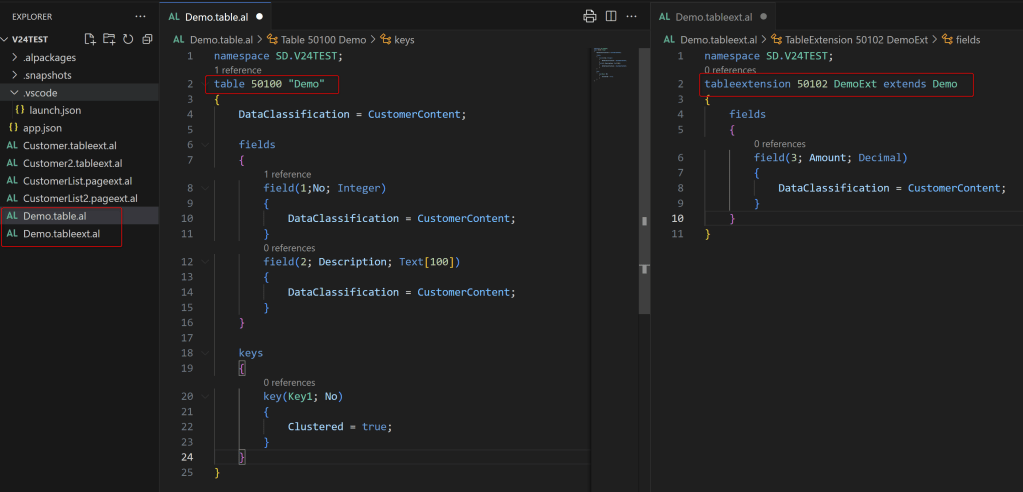 Now you can also define a new table object and a tableextension object of this base table in the same extension: