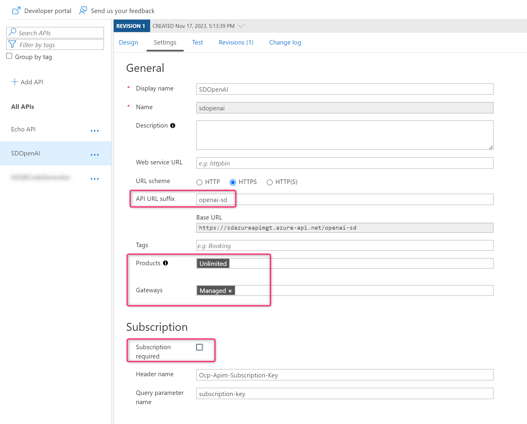 I’m able to call my Azure OpenAI model by passing through the Azure API Management endpoint. Wonderful…