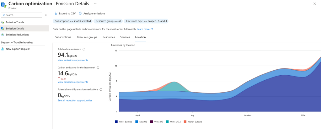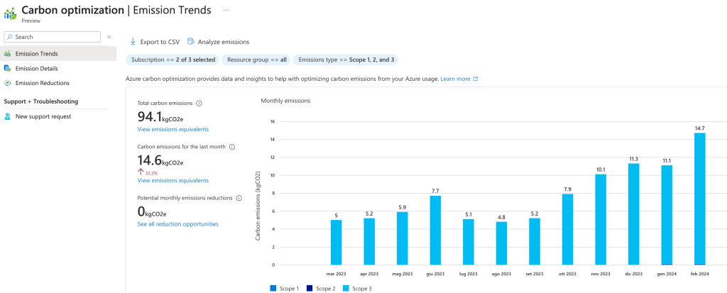 - Track and analyze the emissions associated with your Azure resources and subscriptions.