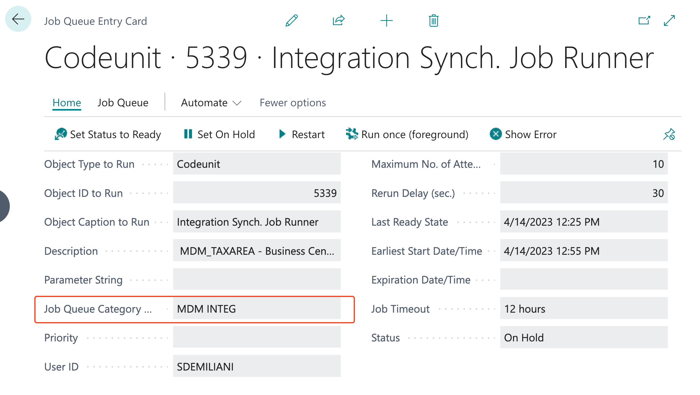 In the Job Queue Entry card, you can assign the task to a particular job queue category: