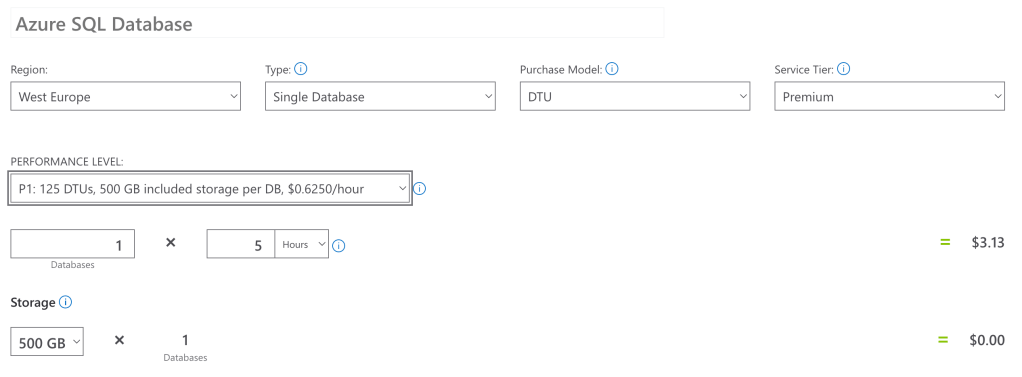 P.S. Don’t worry about the Azure SQL cost: you can take the database online only for the time of the data migration, then you can put it offline (so very few dollars). Just as an example, a P1 database online for 5 hours costs about 3 dollars: