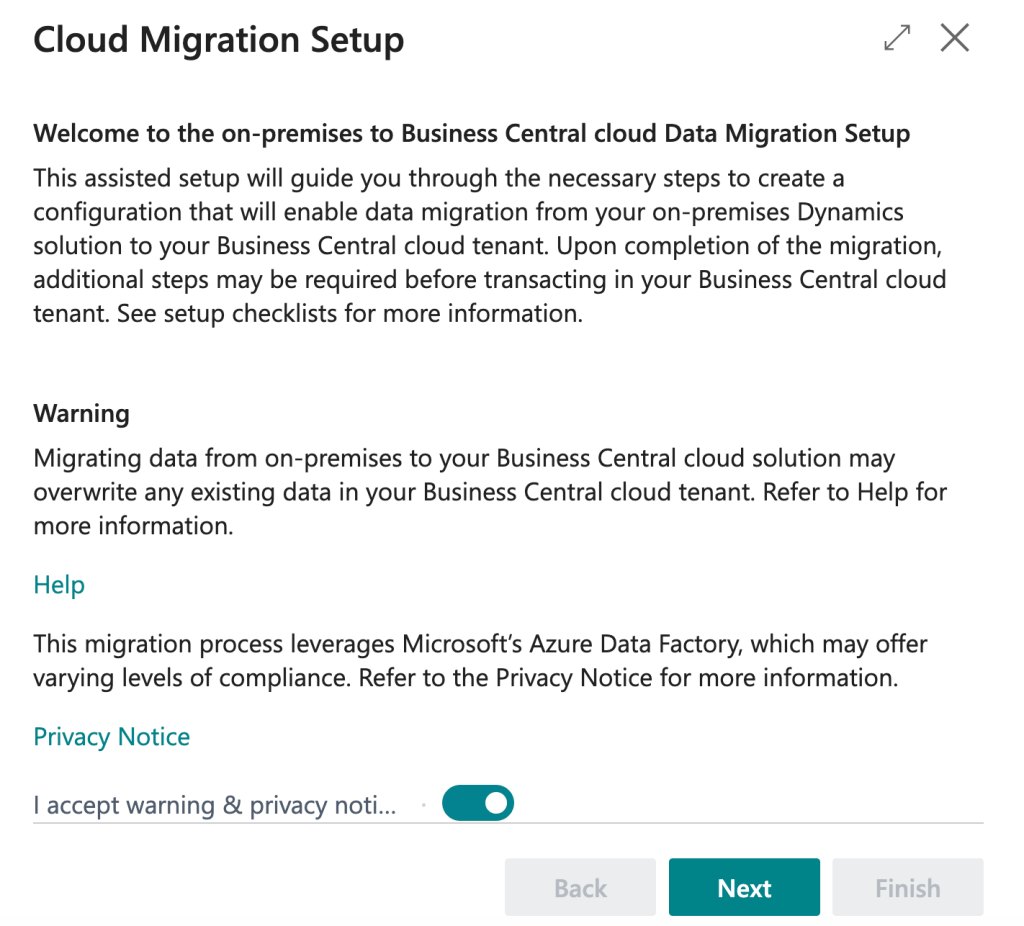 The first myth to dispel is: Business Central cloud migration is using APIs? NO! The Cloud Migration tool uses database to database connection for moving data between the on-premises environment to the cloud environment. This means that the starting point is a SQL Server database or an Azure SQL database containing your data to migrate to the SaaS environment.