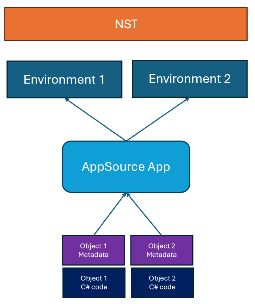 AppSource apps share assemblies (C# code) and metadata across environments. This is possible because those apps have an unique identity across tenants (global identity granted by AppSource). Here is a diagram representing the architecture: