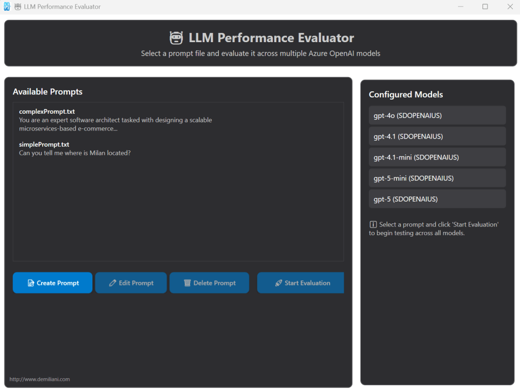 The app I mentioned in Poznan is called LLMEvaluator and it’s a Windows application designed to help developers and organizations make informed decisions by systematically evaluating and comparing multiple Azure OpenAI models across custom prompts.