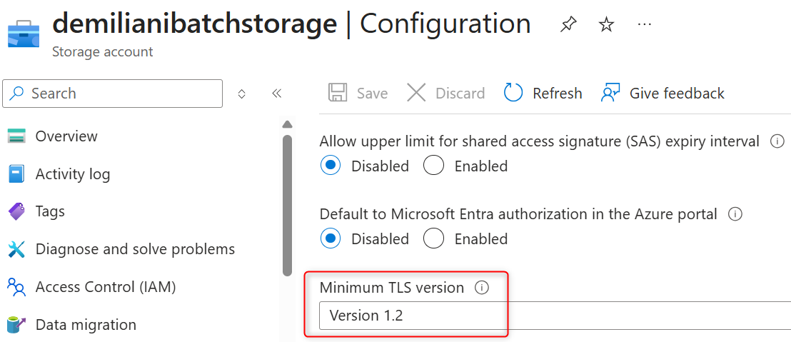 Fixing TLS version in Azure Storage Accounts