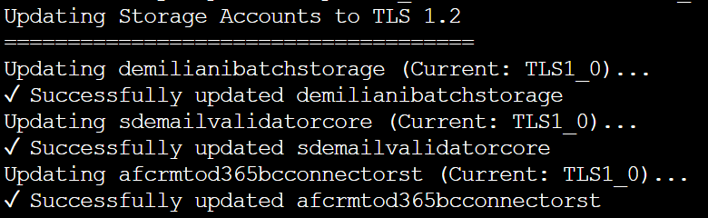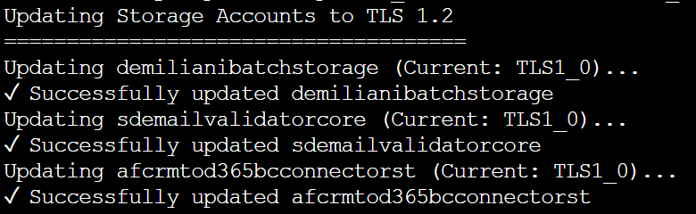 echo "Updating Storage Accounts to TLS 1.2"