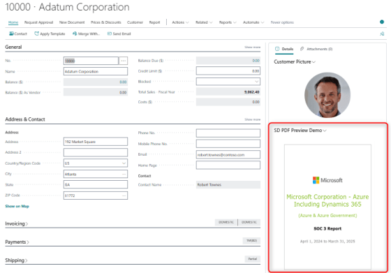 Dynamics 365 Business Central: previewing PDF files in web client using the new ExtendedDataType = Document.