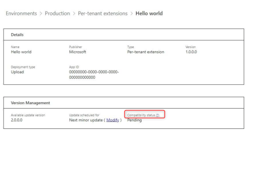 Dynamics 365 Business Central 2025 Wave 1: checking app compatibility with future versions directly in Admin Center.