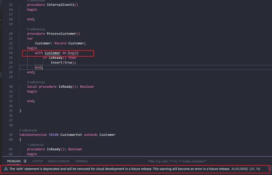 Dynamics 365 Business Central: obsoleting the WITH statement