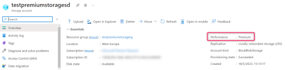 Azure Blob Storage: upload and download latency between Standard and Premium tiers.